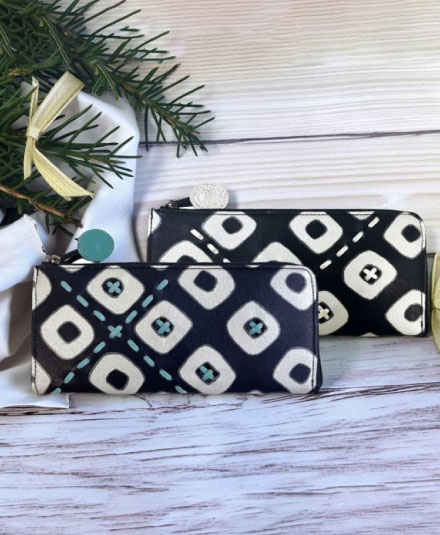 風車のような模様の深い型押しを施したイタリアレザーを使用 セーヌ L字F束入れ
